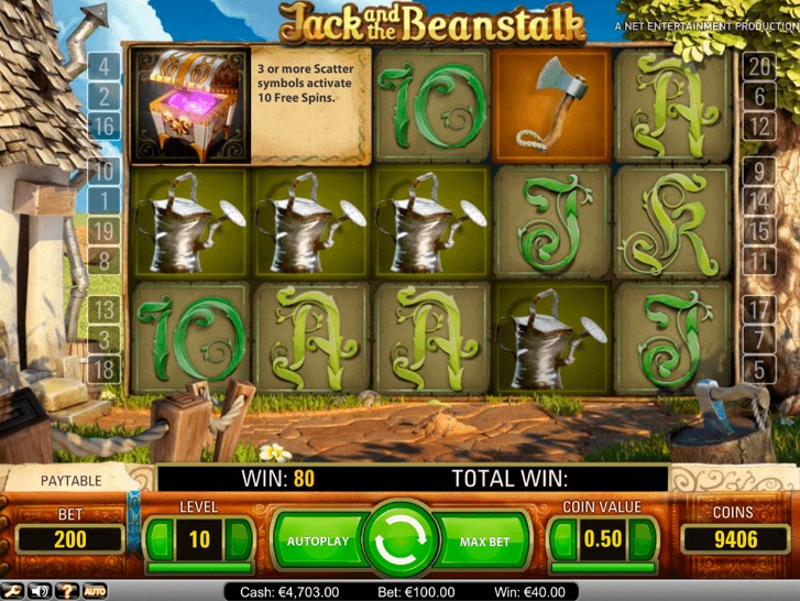 Det finns ett intro till spelet, en liten animation där NetEnt visar Jack och hönan, och hur de jagas av jätten. I själva spelet finns många av figurerna från sagan med. Jack själv finns med i inramningen till spelet, han är en animerad pojke som följer med en när man spelar. Med i inramningen finns också stugan och omgivningarna där de bodde. Bland symbolerna på hjulen finns till exempel bönstjälken, en yxa och en kista med guld.